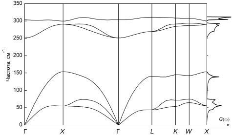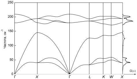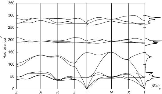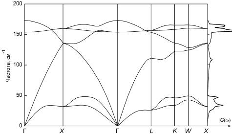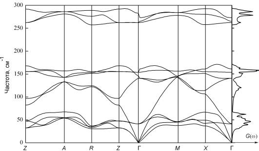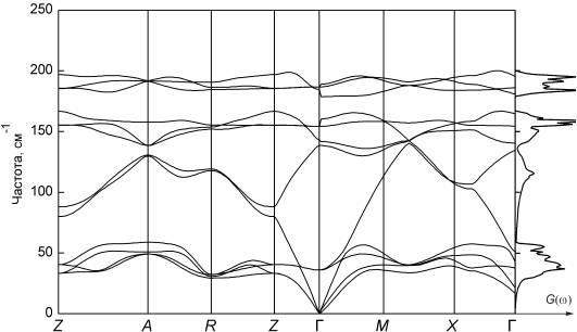 Рис. 6. Фононный спектр и плотность состояний