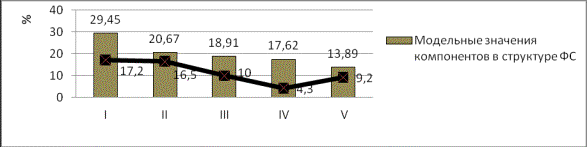 компонентов в структуре функционального состояния легкоатлета-бегуна Ф.Р. относительно вычисленных нами модельных