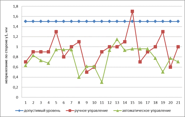 На рисунке 2 представлен график колебания неприлегания стекла в точке контроля у1