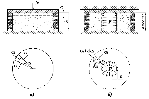 осьове навантаження зразка в спеціальній обоймі, стінки якої стискуються разом