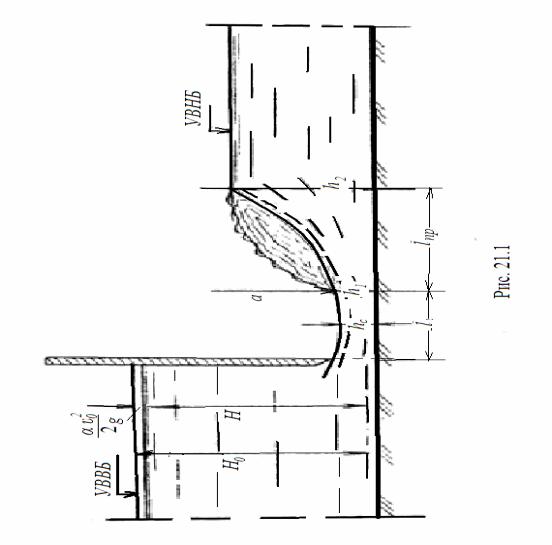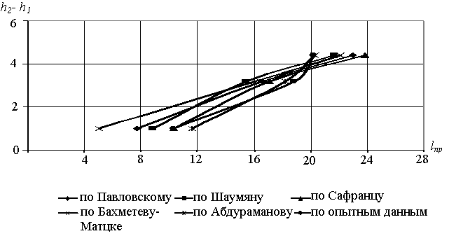 глубина или глубина в сечении перед прыжком, h2 – конечная глубина в сечении за прыжком. Длина прыжка