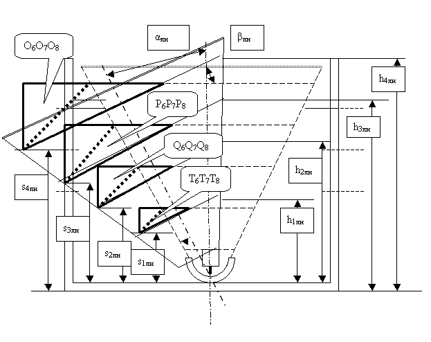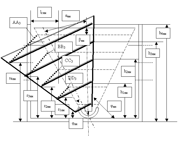 Рисунок 2 – Расчетная схема понижений крайних левых точек решет и