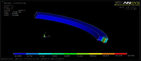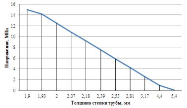 наибольшие напряжения возникают на нижней части трубы с наименьшей толщиной