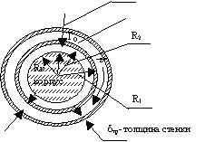 горячего теплоносителя (среда) к цилиндрическому корпусу через стенку трубы и