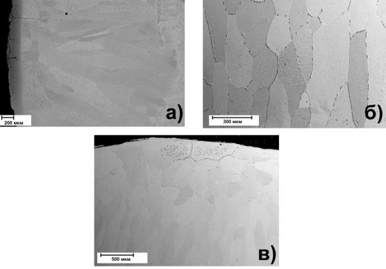 Рис. 4 Структура наплавленного металла с содержанием алюминия 10–14%: а) после