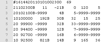 Рис. 1 Образец данных с метеостанции Болонья формата IGRA
