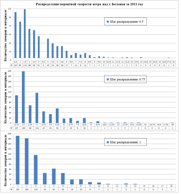 диаграммы. Интервал 1 м/с неоправданно велик, т.к. приводит к смещению