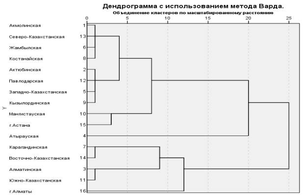 Первая состоит в проведении группировки регионов Казахстана на кластеры, в