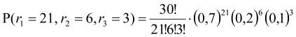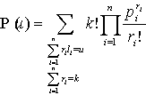 Theorem 2. The probability that in the case of social impact u k factors with repetitions in which l1 factor influenced the social event's time r1, l2 factor influenced the social event u r2 times, and so on factor