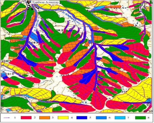 –forest; 8 – road of avalanche;