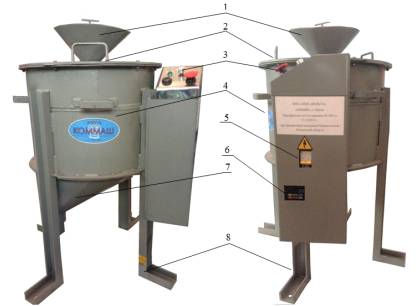 состоит из загрузочной воронки 1, верхнего диска 2, панели управления 3,