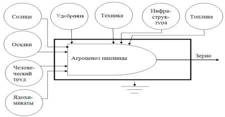 эквивалент активного агента в удобрения; выходной поток - зерно.