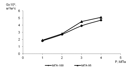 коэффициента задерживания и гидродинамической проницаемости мембран МГА-95,