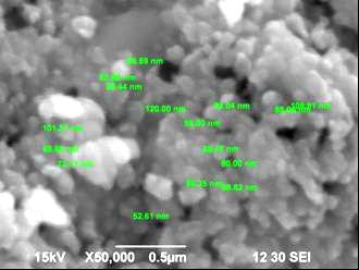 Рис.1. РЭМ изображение продуктов СВС реакции: Ni0.75Zn0.25Fe1.975Nd0.025O4