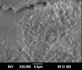 Поверхность таблетки образца состава Ni0.75Zn0.25Fe1.975Ib0.025O4,