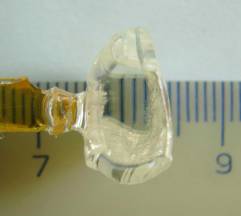 Рис. 2. Кристалл NaBi(MoO4)2, выращенный из шихты 30 мол. % NaBi(MoO4)2 – 70 мол. % Na2Мо2О7 на