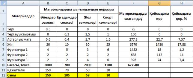 берілгендерін Microsoft Excel электрондық кестесінде дайындап, шешімін