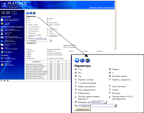 необходимые параметры можно вывести ведомость по дисциплине с указанием