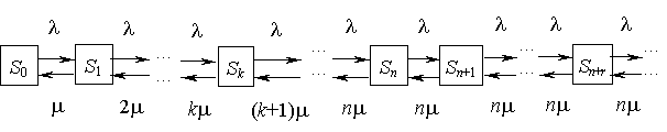 все каналы, а очереди нет, Sn+r – заняты все каналы, r заявок в