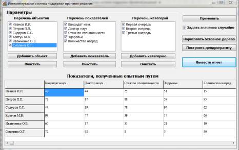 список объектов (кандидатов) и признаков (критериев отбора в кадровый резерв),