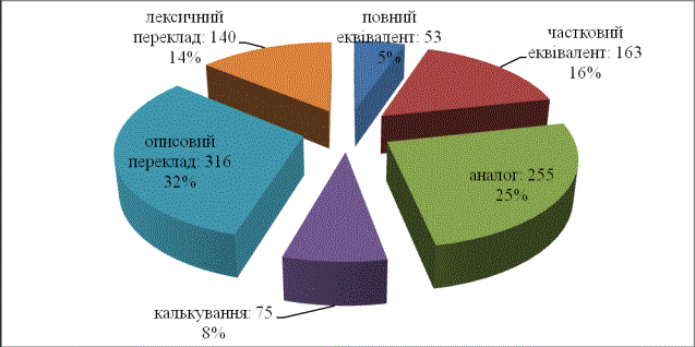 «світ» найчастіше використовувався описовий переклад, а саме у 316 (32%)