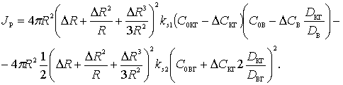 концентрации продуктов реакции в процессе диффузии от границы r1 до границы r2.