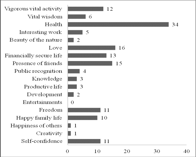 financially secure life and presence of friends are priority. The choice on these values was made by 4