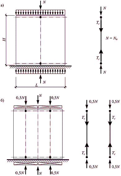 за единицу длины фрагментов стен принято расстояние L, во втором случае – 0,5L и менее. Стержневые модели (СМ) в этом случае