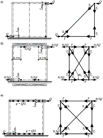 принцип моделирования стен при действии горизонтальных сил (рис. 2). Наиболее