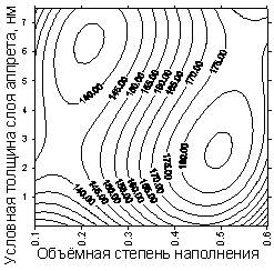 кодированное значение объёмной степени наполнения; x2 – кодированное значение расчётной толщины слоя