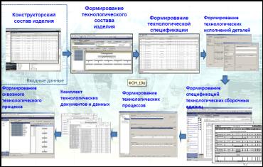 Конструкторские и технологические составляющие общей работы должны продвигать друг друга к общему согласованному решению. К объединению совокупностей конструкторских и технологических работ целесообразно подходить с позиции потоков работ [3], которые рациональным образом смешиваются. Заметим, что (в наиболее общем плане) под потоком работ понимается автоматизация бизнес-процессов (полная или частичная, как правило, в рамках организационной структуры, описывающей функциональные роли и отношения), при которой документы, информация, задания передаются для выполнения необходимых действий от одного участника к другому в соответствии с набором процедурных правил.