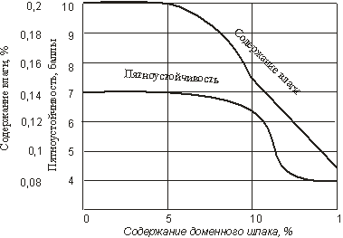 Рисунок 2 - Влияние содержания доменного шлака на свойства