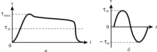 Рис. 3. Пульсационный (а) и симметричный (б) циклы нагружения