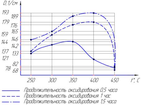 что возрастание продолжительности оксидирования с 0,5 ч до 1,5 ч при t=2500С