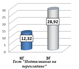перекладине» у подростков экспериментальной группы результат улучшился на 2,20
