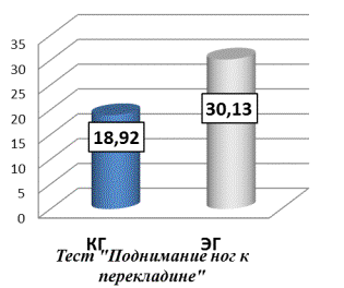 юношей контрольной группы – 12,32% (0,8 раз); в тесте «Поднимание ног к