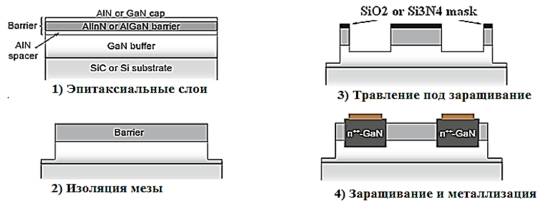 операций формирования несплавных омических контактов к гетероструктуре на