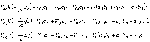 проекціями швидкості на нерухомій осі очевидними співвідношеннями –