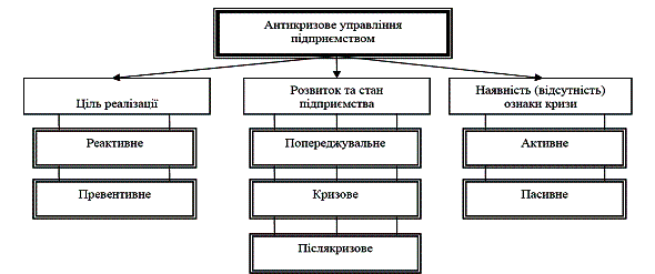 Рис. 1. Видова класифікація антикризового управління [1,