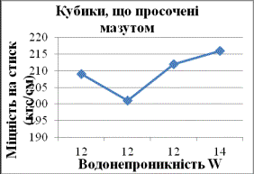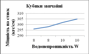 1 – Відношення водопроникності до міцності бетону (кубики звичайні)