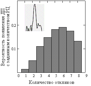 Разная ширина ДП и количество откликов от РЦ в ДП обусловлены различной угловой скоростью поворота планера ВО относительно линии визирования при полете ВО в турбулентной атмосфере [4,8].