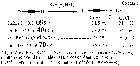 условии, что катализ почти одинаково происходит как под влиянием молекул CuCl, так и CuBr: MeOCH2NEt2<EtOCH2NEt2< <BuOCH2NEt2 < iPrOCH2NEt2.