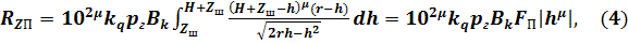 до плоской зоны и принимается цилиндрической формы с радиусом, равным