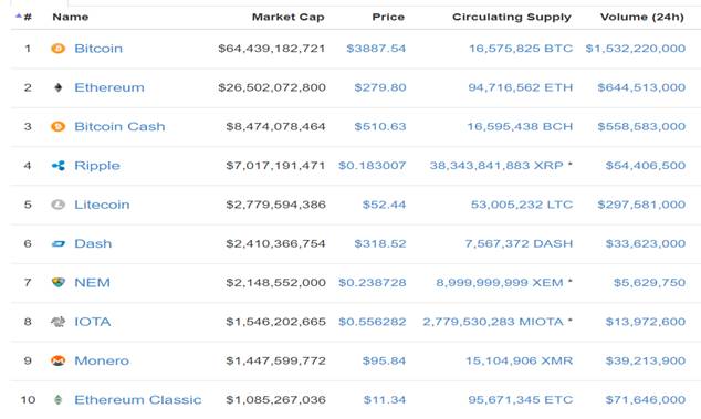 По состоянию на 01.09.2017 на рынке криптовалют