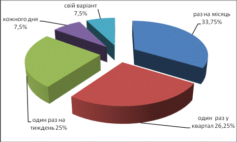 один раз у квартал – 210 респондент (26,25%), серед них чоловіків – 150