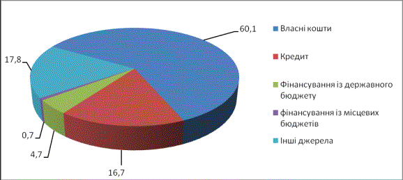 Рис. 1. Структура джерел фінансового забезпечення