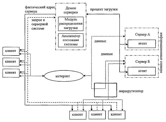 клієнт клієнт клієнт клієнт клієнт клієнт дані запит до серверної системи відсоток навантаження фактична адреса серверу Демон серверів агент Аналізатор стану системи Маршрутизатор агент Сервер Б Сервер А дані інтернет Модуль розподілу навантаження