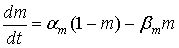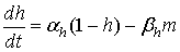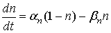 описывается динамика изменения ионной проводимости нейрона в зависимости от