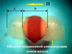 Рисунок 1. Формирование областей с повышенной концентрацией ионов Fe.
