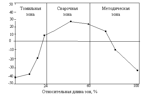 зон. В этой части печи состав продуктов сгорания практически одинаков по всему